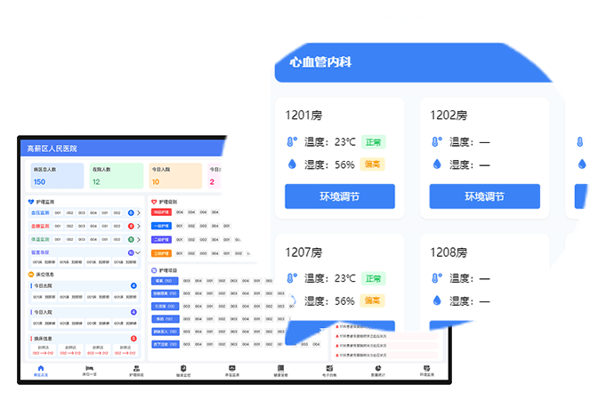 監(jiān)測病房溫度、濕度,顯示環(huán)境狀態(tài),并可進行環(huán)境調節(jié),營造舒適就醫(yī)環(huán)境。