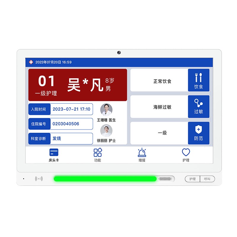 帶活動攝像頭,支持護理增援:按下分機上的“增援”鍵,可呼喚增派其他醫(yī)護人員。 可外接緊急衛(wèi)生間報警按鈕。