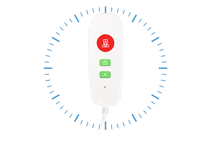 支持一鍵呼叫,支持取消呼叫,低功耗、長續(xù)航、補(bǔ)充快,視距180米(發(fā)射與接受之間無障礙物),尺寸106*86*23mm,占用位置小,適用于各種場景。